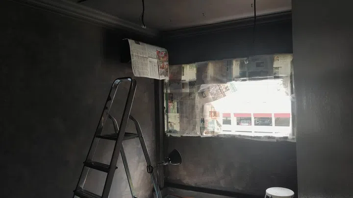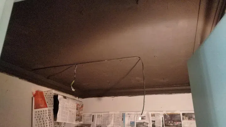 Next was the ceiling. I drilled 12 holes into them and installed 12 hooks, and rewired the ceiling light into 2 separate lines. I wanted to remove the cornices, but decided not to, it wouldn't be very obvious in a black room anyways.