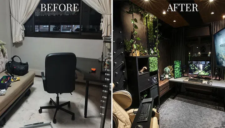 Amazing room transformation: Graphic designer uses upcycled and new materials to create room for gaming and pet spiders