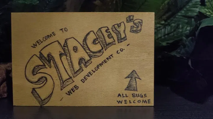 And this is the sign that started it all! I made this sign for her just for fun, but it's also now become the name of this page. I will probably rename the page to 'Stacey's Web' soon, as too many people have been asking me if this page offers web development services. No...we make...um....real webs? And they're not for sale.
