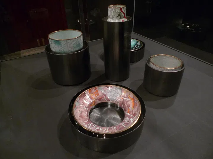 Nicolas Cheng spent over six months in China to acquire the traditional skills and techniques to produce a set of cloisonné vessels. The end product stages a stark contrast between the traditional craft of cloisonné and the industrial feel that reminds us of mass production today.