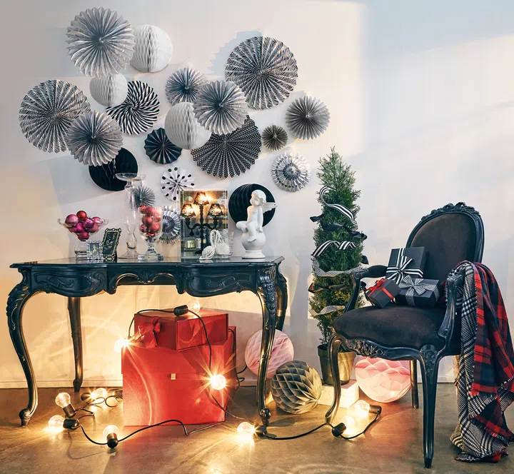 Christmas doesn’t always have to be green and red. For a modern, bold look, choose a clear colour theme—black, white, neutrals, or even monotone.