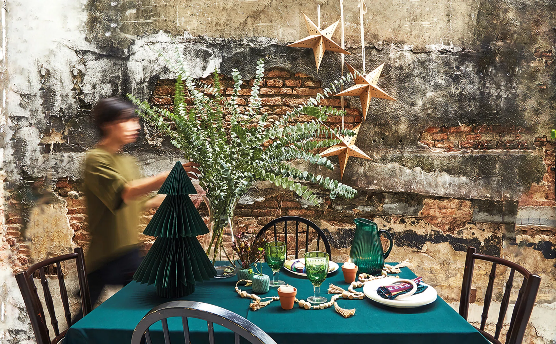 When CNY arrives, simply refresh it with reds, yellows, or artificial blossoms. This reusable approach not only saves storage space but also blends two festive celebrations seamlessly.