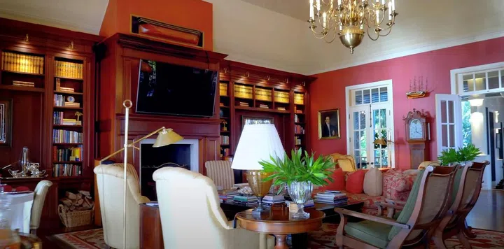 The main house offers tasteful furnishings and a classic style.