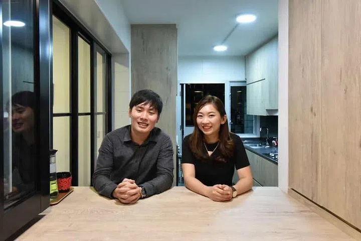 It is common for clutter to build up in a home after it has been lived in for a period of time. Married couple Ow Khai Wan and Kimberly Chow try their best to make sure that does not happen in their five-room HDB flat in Tampines, where they have lived for a year.