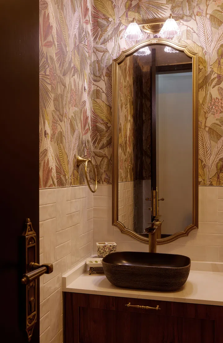 Every room in the home features dramatic wallpaper that sets it apart from the rest whilst also establishing a common thread through their consistent safari and nature motifs. Each wallpaper was carefully selected to complement the respective rooms while staying true to the theme. They give each room its unique character, enrich the storytelling and add visual interest.