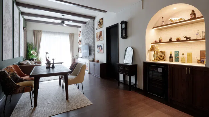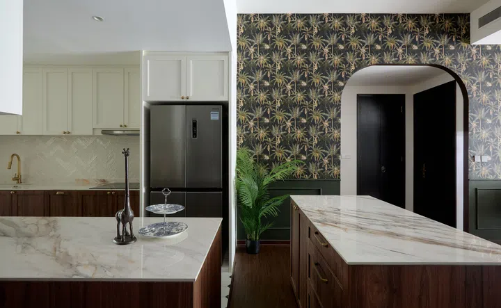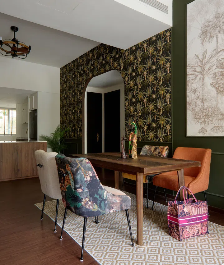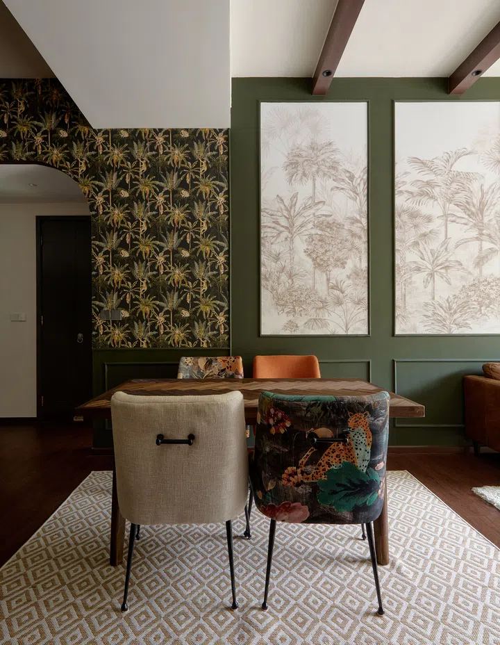 While interior design platforms, websites and social media are awash with minimalist styles, homeowners Sean Tan and Michelle Ngiam were leaning towards something at the opposite end of the aesthetic spectrum, something that is audacious, expressive and distinctly maximalist. Think bold colours, striking wallpaper, rich textures and rustic elements.
