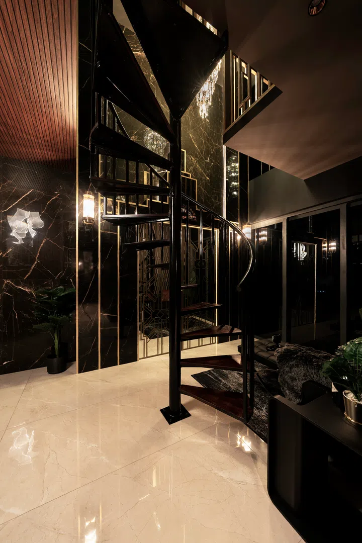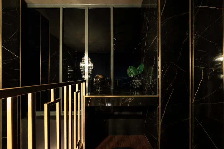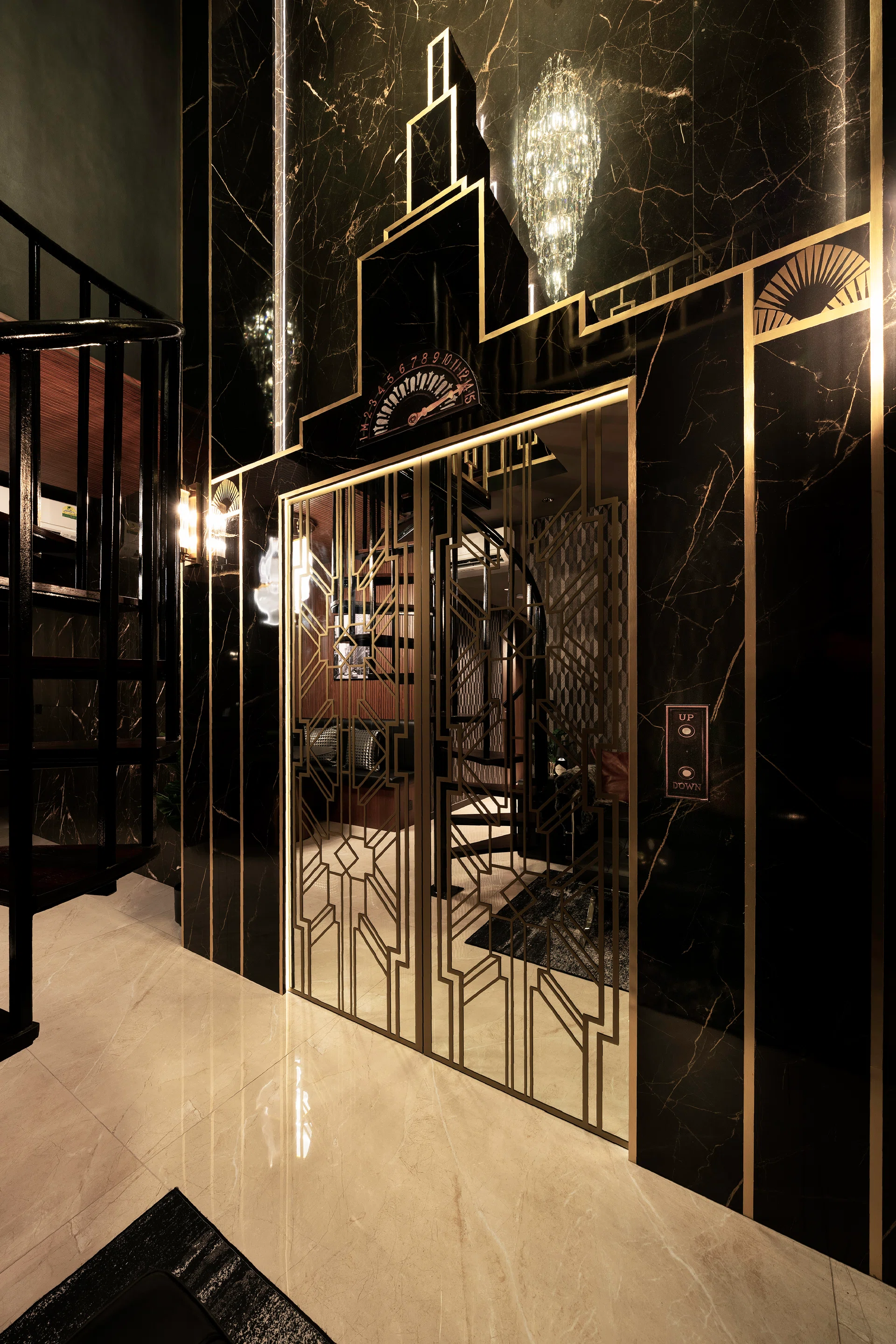 To make this feature look as realistic as possible, Carmen had the “lift doors” clad in a mirror finish with specially designed gold decals. She even went the whole nine yards and added a floor level indicator above the doors and a lift button panel on one side. American architect and designer, Charles Eames’ mantra, “The details are not the details. They make the design,” is also the design philosophy that Carmen abides by.