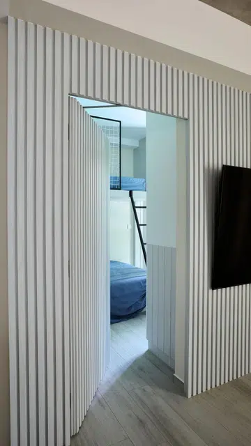 With the intention of maximising space, Kelvin customised a bunk bed for the couple’s twin girls. Steps and a ladder make this minimalist space both fun and comfortable. There is also ample wardrobe space to take the girls through their growing up years into young adulthood.