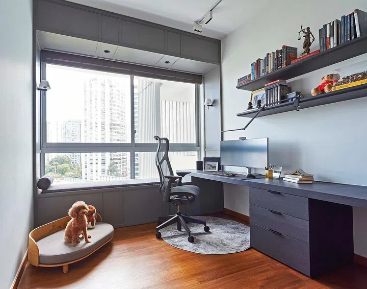 One of the bedrooms has been converted into a study that allows the couple to work from home more comfortably.