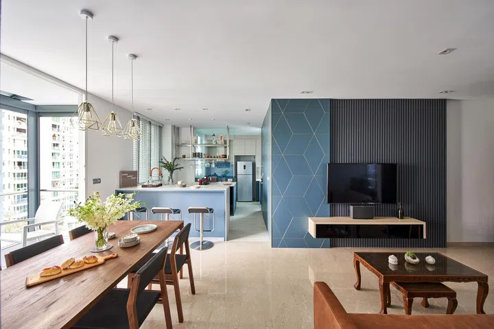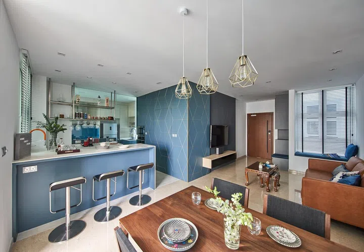 Most people dream of having an open-concept kitchen featuring a bar or island counter, but also need an enclosed space to do heavy-duty cooking. When this homeowner had the same request for his 118sqm home in Ritz Regency, Caine Cheong of Ideasxchange proved it possible by reconfiguring the layout to include both a bar and wet kitchen.
