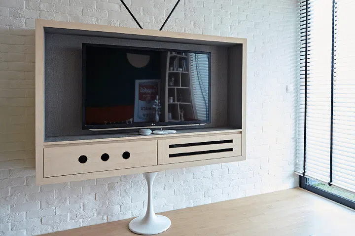 “The whole setup is installed securely on the wall, so it’s not just supported by the leg,” shares Carmen.