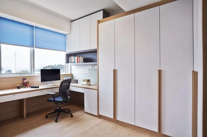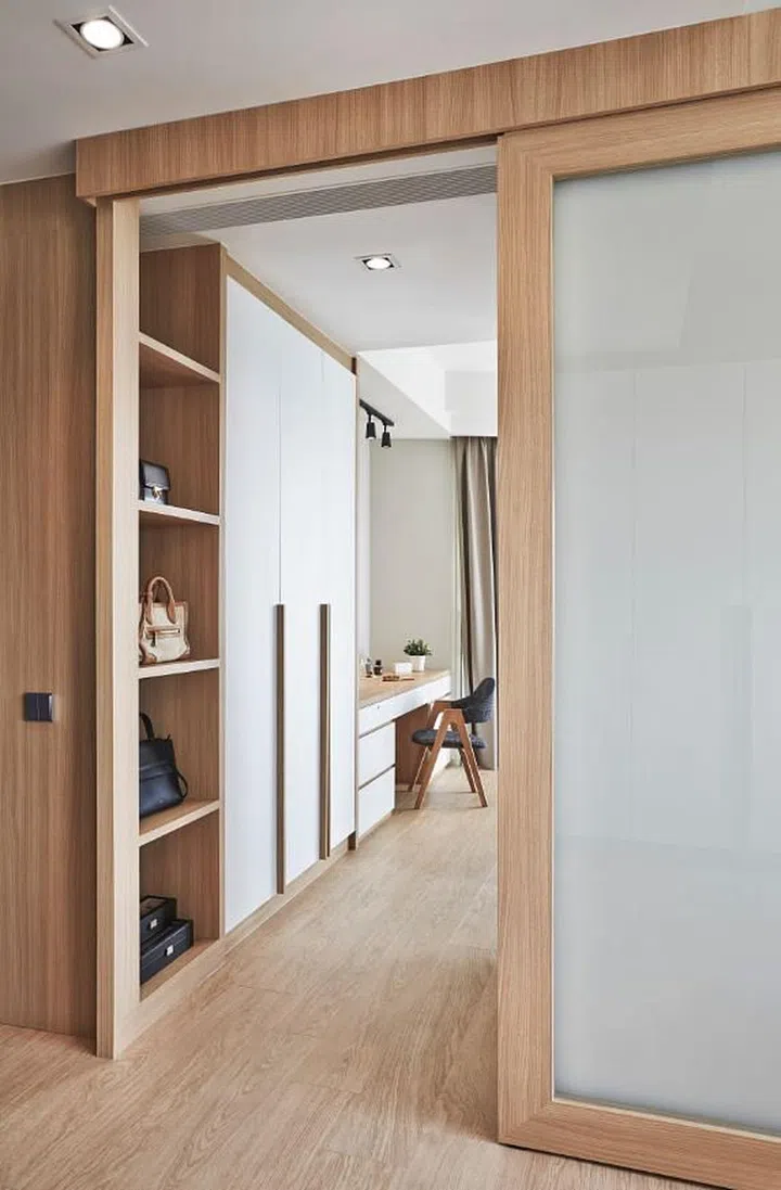 They also wanted the study and bedroom to be connected, so the designers hacked the walls between the two rooms and installed a panelled glass sliding door so that movement is improved between the spaces.