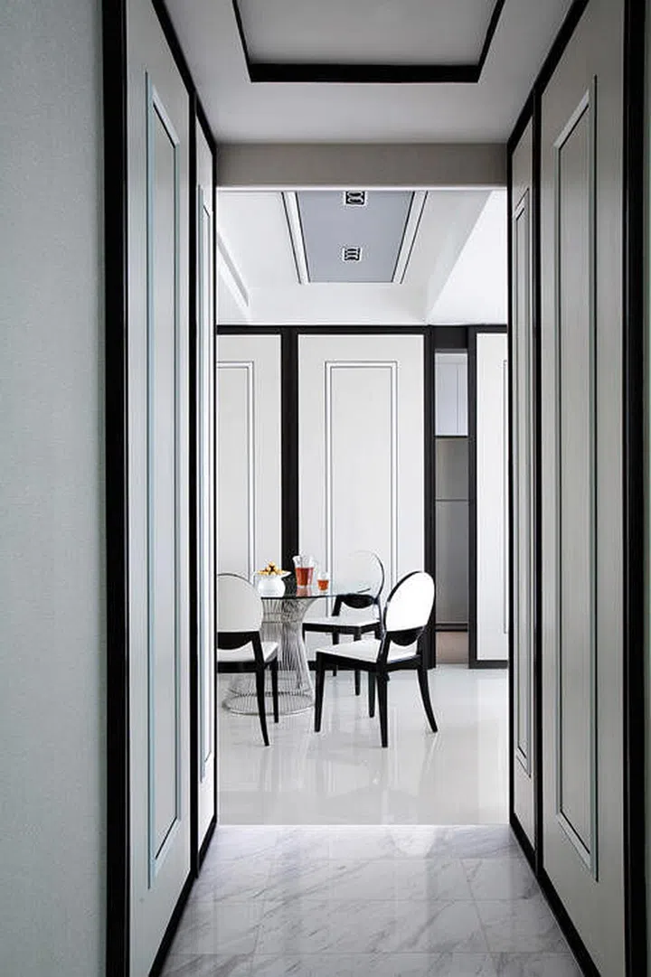 Elaborate mouldings and panalling are just some of the elements adopted by this monochromatic apartment designed by Metaphor Studio. But the interior design firm gave these classical elements a modern twist and created an elegant home for these homeowners.
