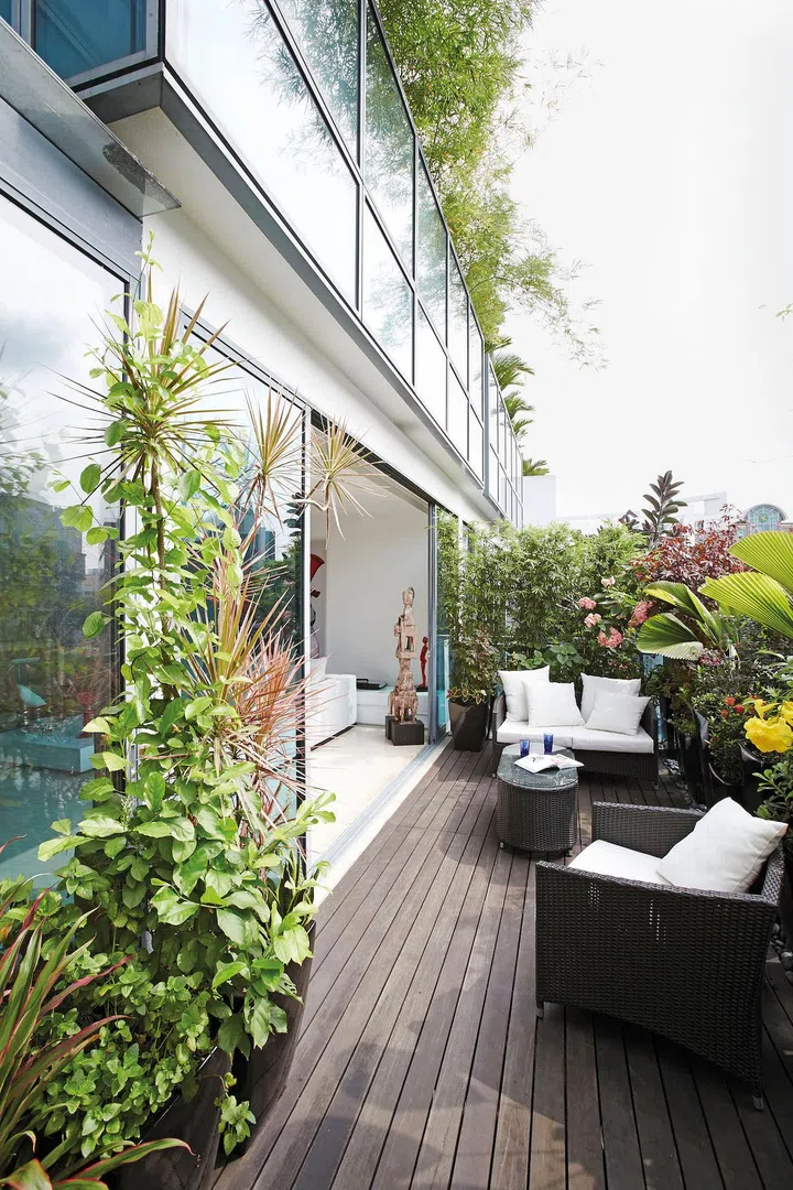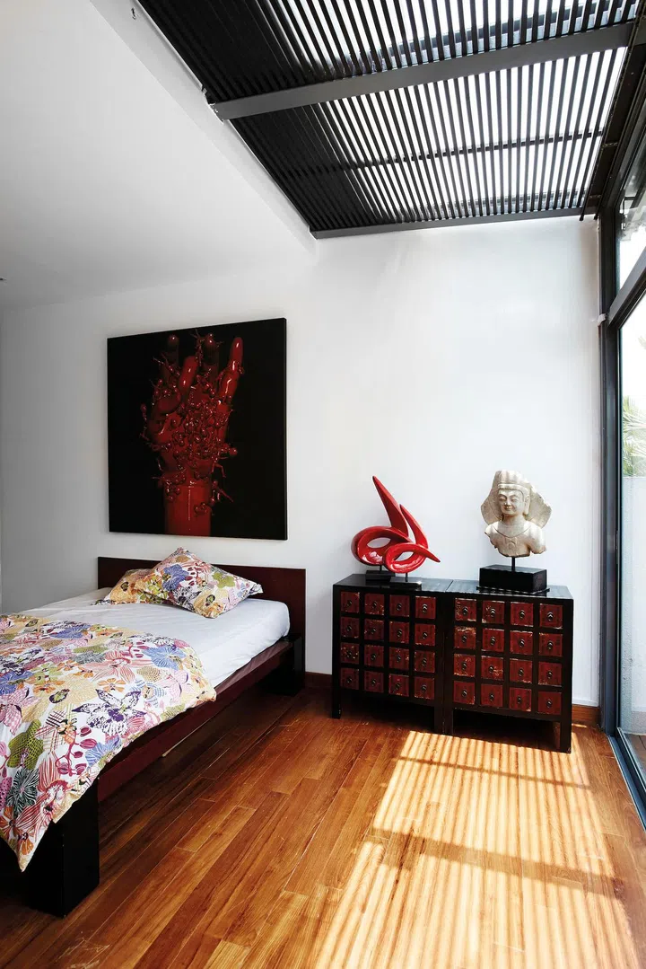 The homeowner extended the master bedroom into the terrace and filled the gap in the ceiling with grilles so sunlight can still enter.