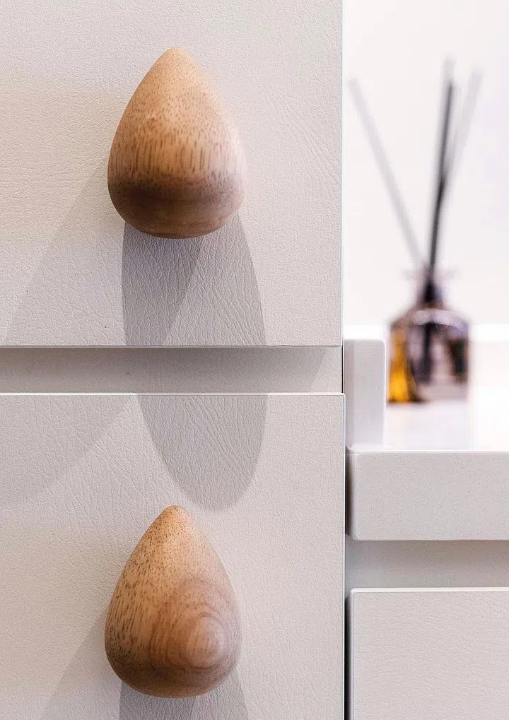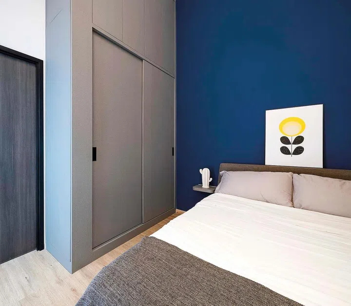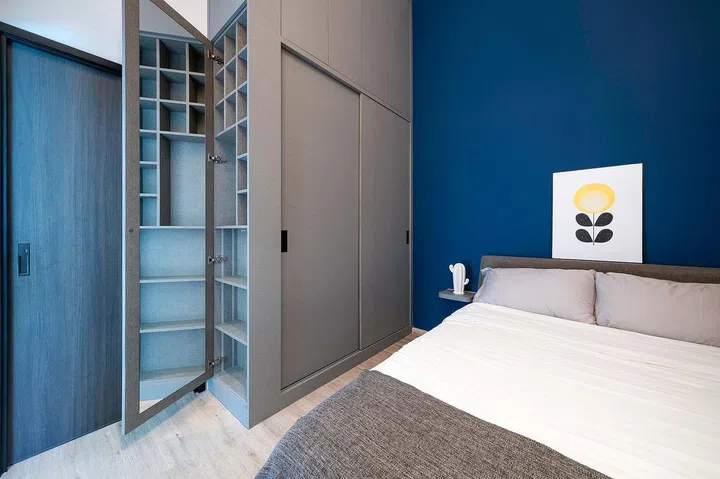 As part of the bedroom renovation, Carmen tells us Wolf Woof replaced the old wardrobe with a new one that includes side storage with smaller compartments for their accessories collection.