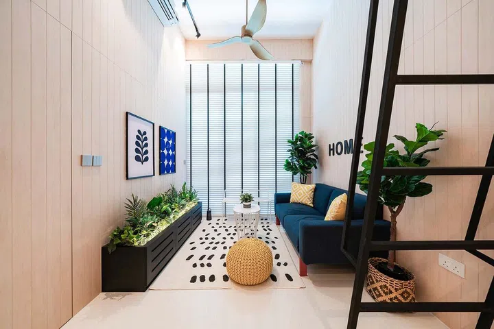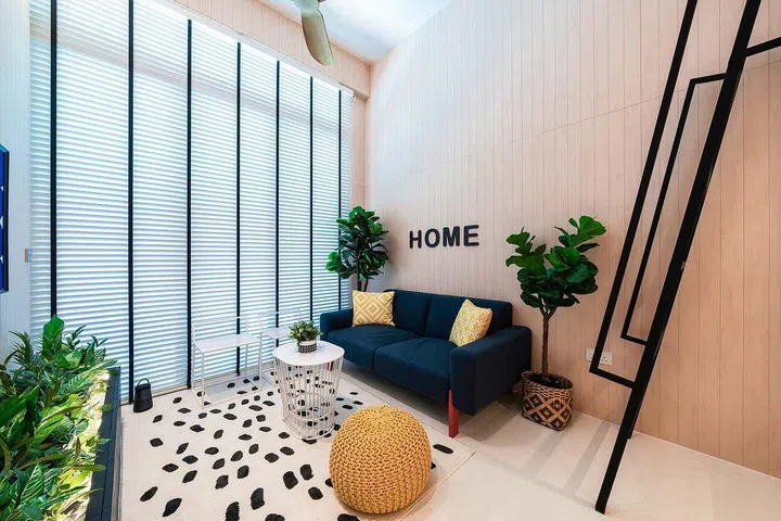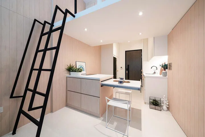 Is it possible to squeeze a loft into a one-bedroom condominium unit with a 3.75m ceiling without it feeling cramped? As Carmen Tang, founder of Wolf Woof, illustrates in this 527 sq ft home in North Singapore, you can.