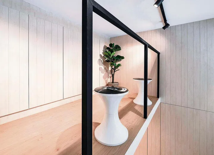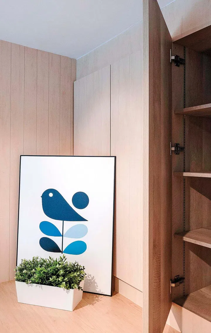 The owners, a couple in their 40s working in the automobile industry, had a short but specific wish list. In addition to a clean Japanese style with wall cladding, they wanted a loft space. The Japanese look was easy, but the loft's construction was more challenging because of the unit's height, Carmen shares.