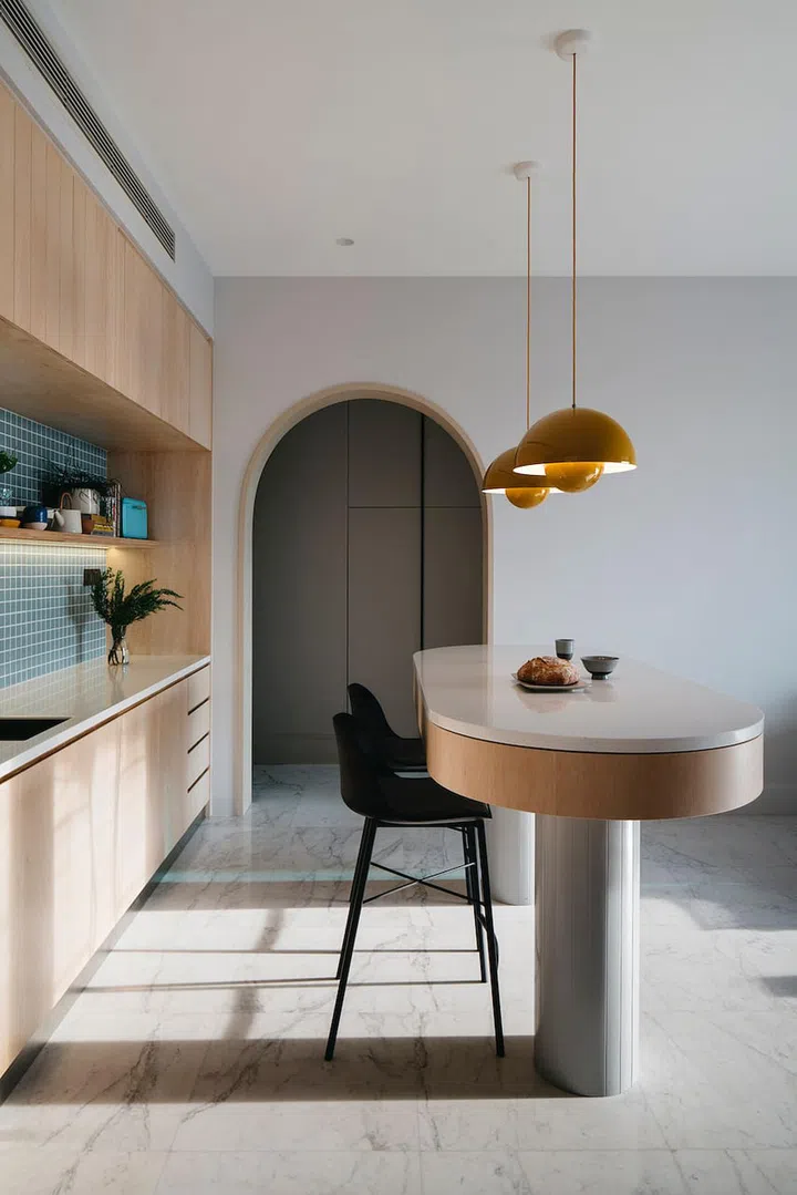 House Tour: Gentle curves, cool tones and light wood in this condo apartment