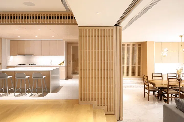 The design team was inspired by the use of simple wooden screens, commonly seen in traditional Japanese dwellings, to create a look that’s heavily focused on the light-coloured wood material. The result is a home that epitomises the Japanese Minimalist look, with a modern twist.