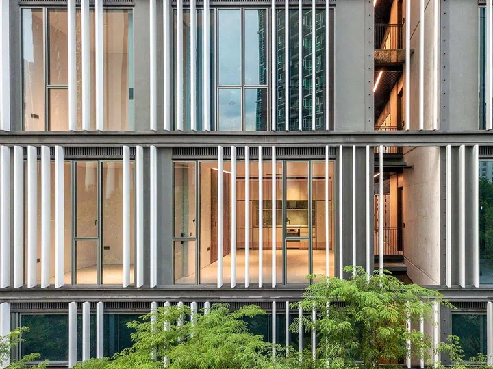Meanwhile, Ludwig Mies van der Rohe's 'free-plan' influenced the simple and free-flowing spatial plans of the apartments," he elaborates.