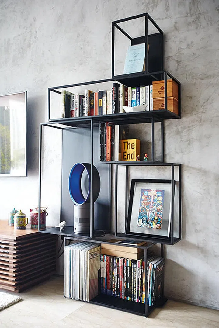 The homeowners are comic book fans; their prized comic collection is displayed on the Cornerblock shelf by Grafunkt.