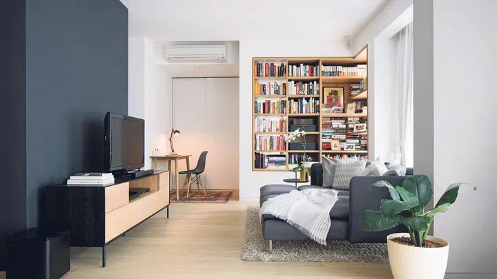 White walls would naturally have been the next step but since Mr Ng didn't want a white box, the walls were done up in a variety of colours. Some walls are clad in timber, others have grey plaster and there is even a standalone wall in the living room that is painted black.