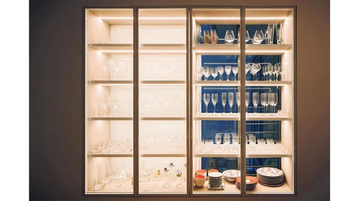 An existing bay window was converted into a display case for wine glasses.