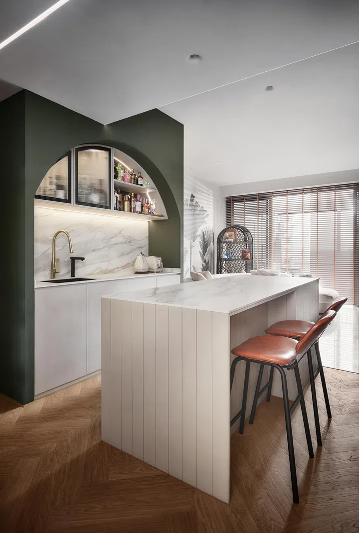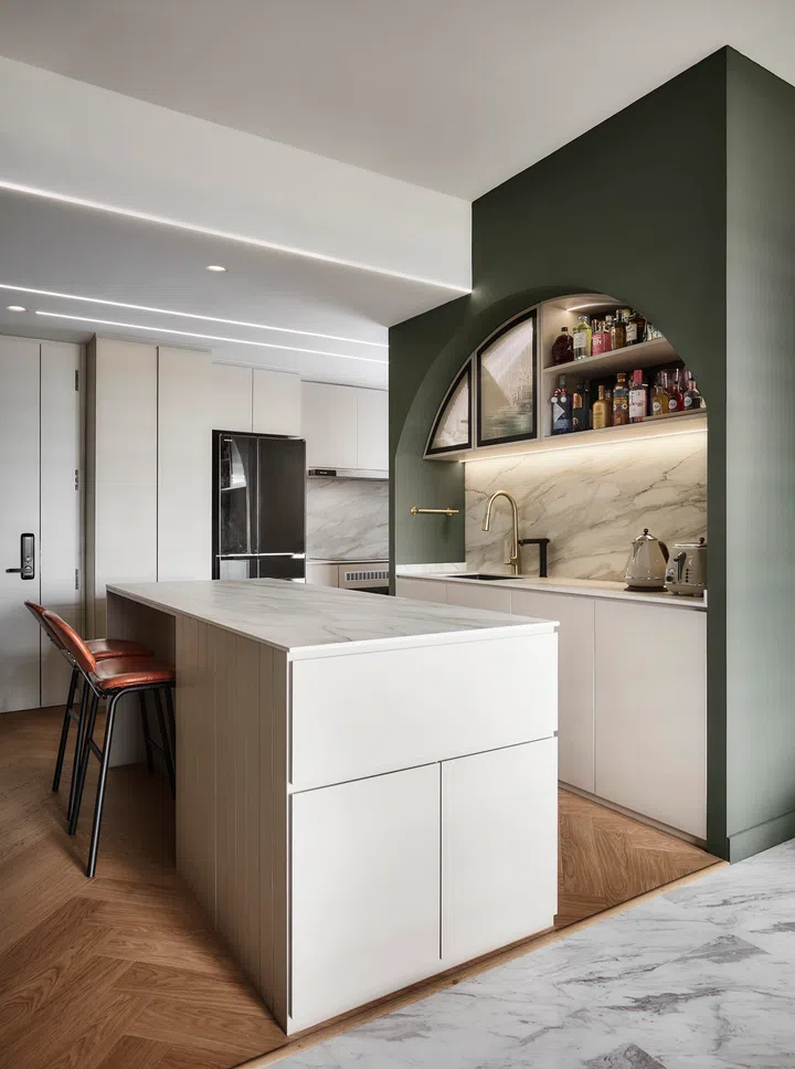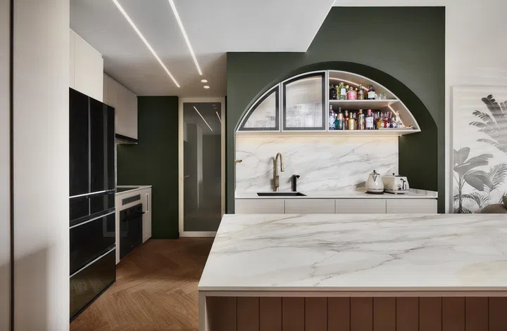 Her brief to Kelvin Teo, the founder of Space Sense Studio, who also designed the home of a close friend, was to create an airy, bright, classy and chic place with clean lines and a peaceful ambience. The gin lover and collector also wanted a Havana theme with a gin bar as a subtle centrepiece.