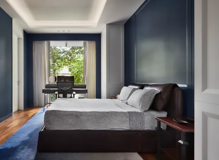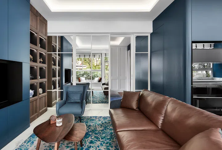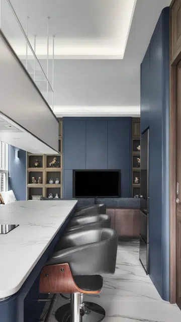 During design discussions with the client, Lawrence noted that he prefers timber elements and blue colour. The client also revealed that he is a little conservative by nature and appreciates classical designs. Bearing this in mind, Lawrence worked with this palette and came up with a design proposal that is predominantly clean and modern, but with classical accents within each space.