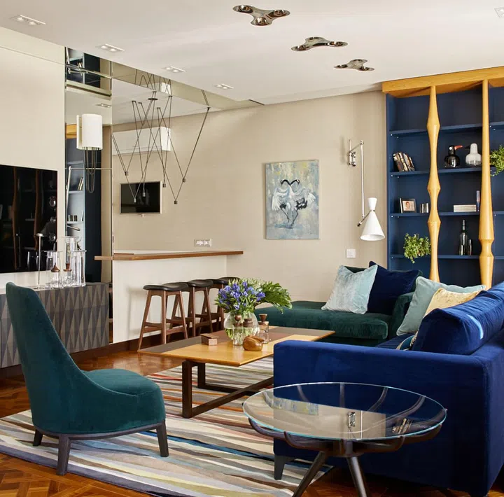 Designed by interior designer Veronika Sudnikova, this nature-inspired apartment is sophisticated and timeless. Veronika and her team from ProVS Studio named it Birds; the rich shades of blue and green certainly reminds us of the sea, sky, and trees!