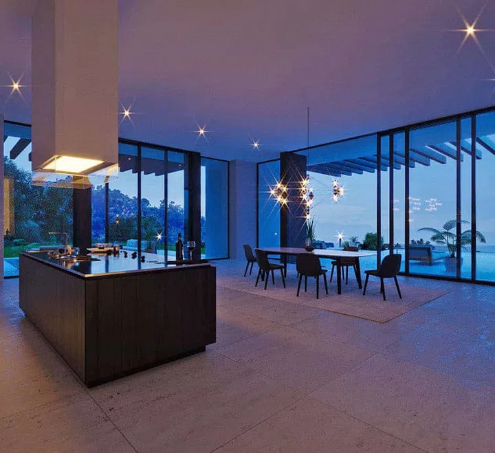 Imagine the fancy dinners they have in this gorgeous contemporary kitchen. Though it seems sparse, the view is all you need to enjoy a good meal, really!