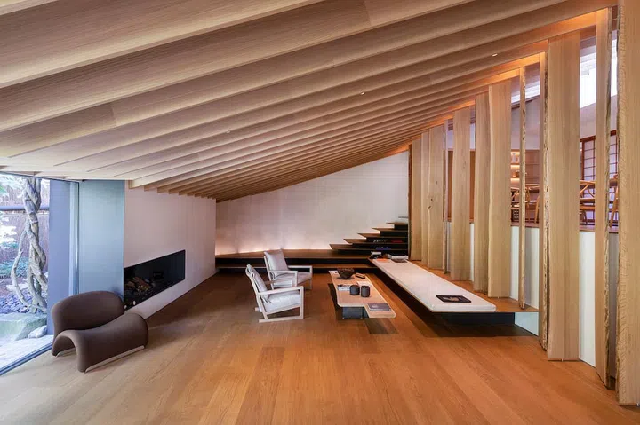The house was built by Takada in 1993 and was later redesigned by architect Kengo Kuma in 2018. Situated in an 18th-century residential building in the Bastille district of Paris, the house spans 13,778 square-foot and consists of four storeys.