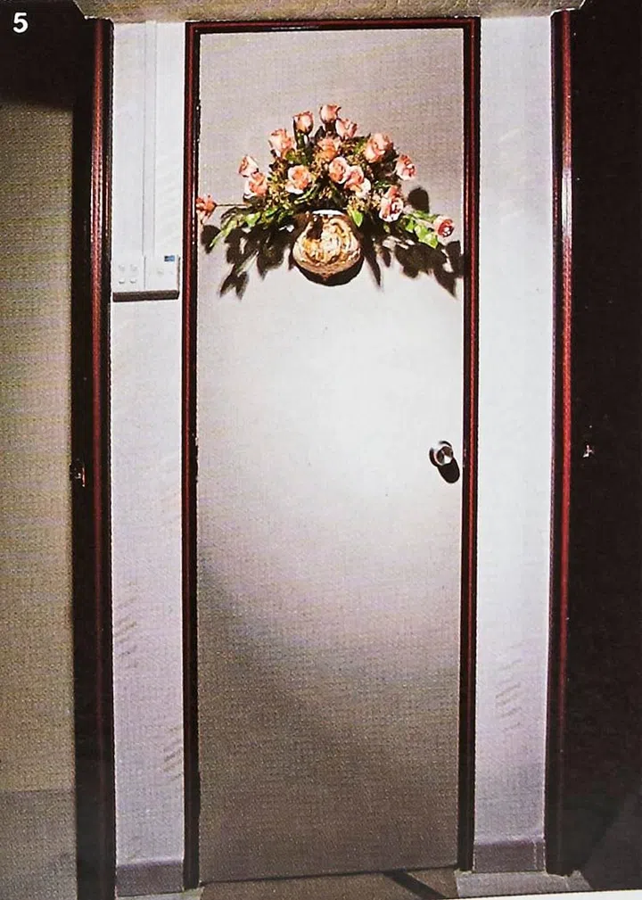 Dave painted the door frames in black and then glued red reflective tape over them, for better feng shui.