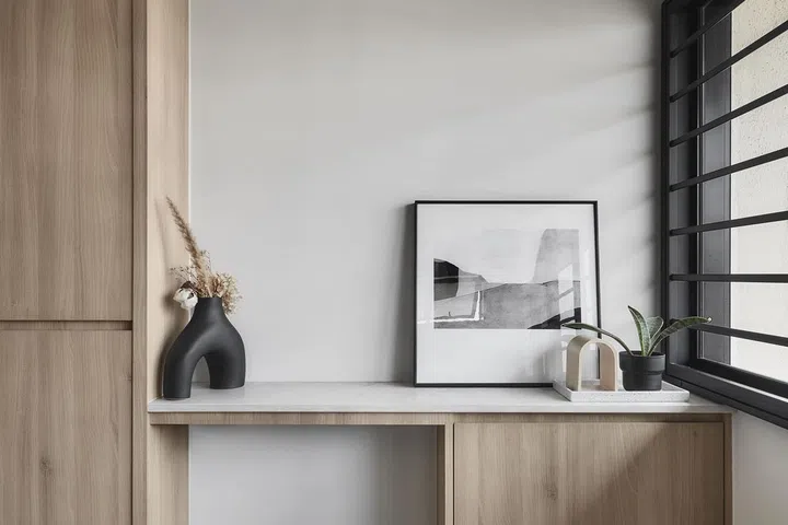 Style wise, Cedrick has a preference for a clean look while his wife, Chua Tse Lyn, who is 33 years old and works as a people experience lead, loves wood. The combination of these led to a modern Scandinavian theme that brings together wood elements, whites and neutrals to create a simple, functional yet warm home.