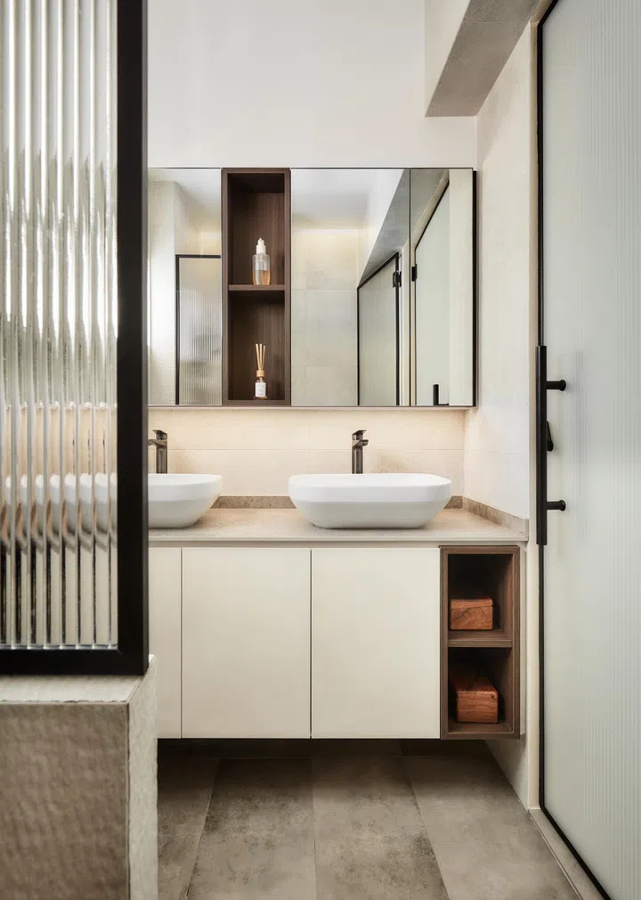 The fluted doors used in this area tie in with the rest of the home’s calming design.