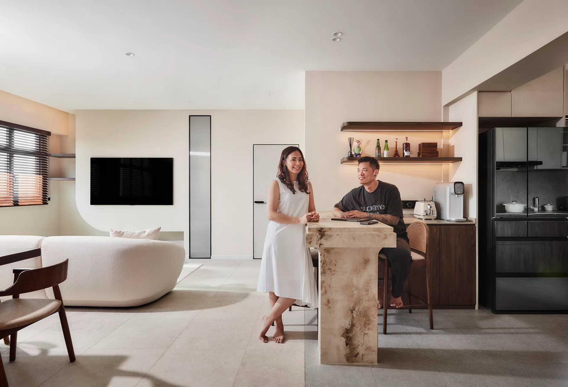 From the moment you step into Crystal and Ben’s home, you get the sense that this isn’t just a carefully renovated 4-room resale HDB flat — it’s a deeply personal space that reflects their shared routines, tastes, and quiet creativity.