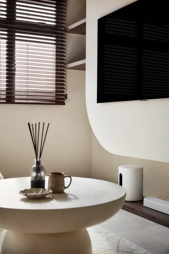 Originally, the living room was meant to be in the space closest to the windows — but Crystal had other ideas. “It felt too small as a living area, so I asked him if we could flip the layout,” she explains. That former living room now functions as a study space, with the potential to become a future nursery.