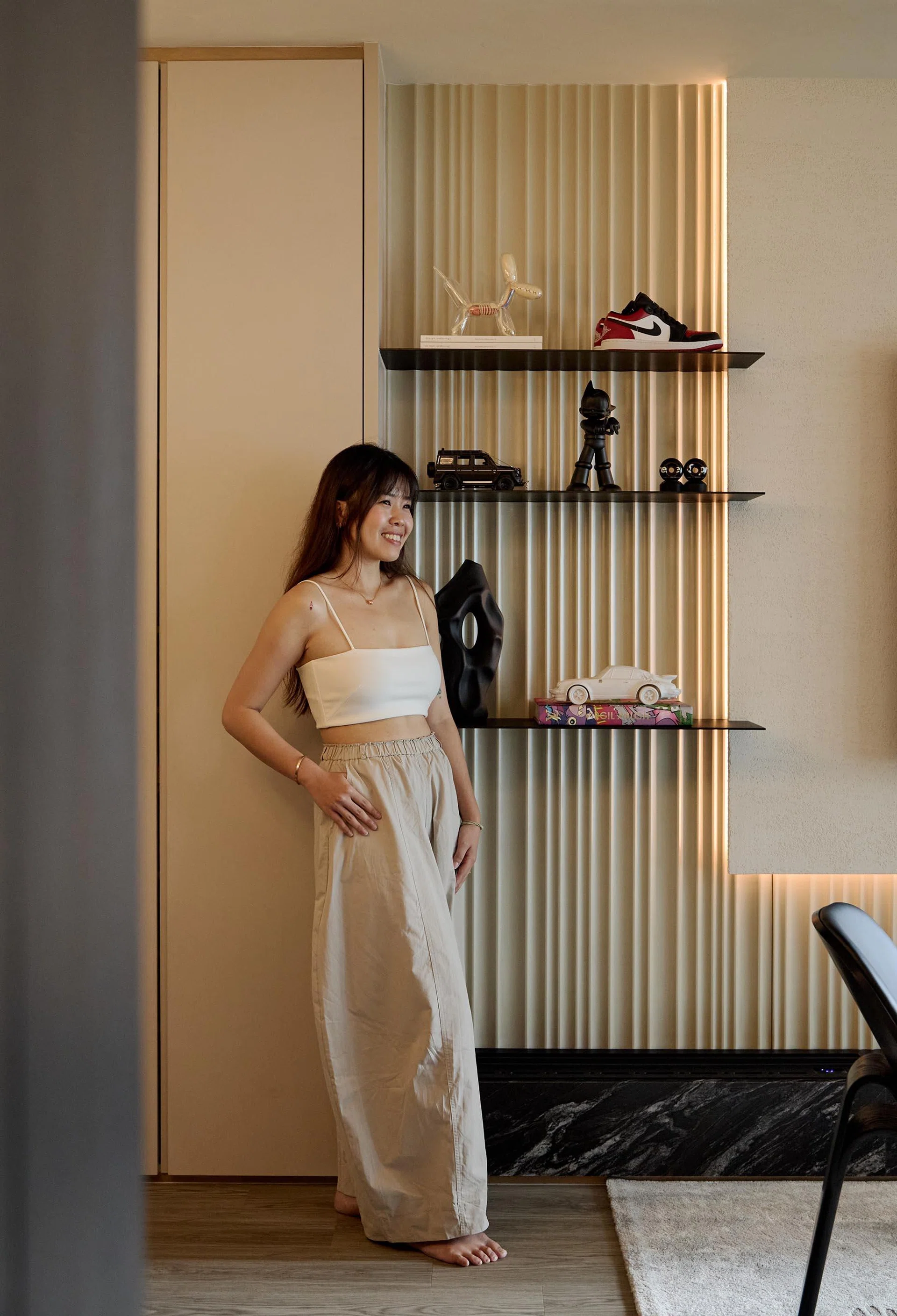 The homeowners, both in their late 20s, have been together since their polytechnic days. It’s been more than a decade, long enough to know what they like, and more importantly, how they live. When the couple, both of whom are spatial designers, finally got the keys to their 4-room HDB flat in Fernvale, there was no rush to fill it up. Instead, they gave themselves time (six months, in fact) to think, sketch, experiment, and slowly build the kind of space they’d feel at home in.