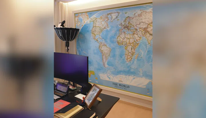 But perhaps the most meaningful room is his study. Framed on the wall is a vintage world map, the same kind he had as a child. “This is where it all started,” Eric says. “Where I dreamed of making the world my stage.”