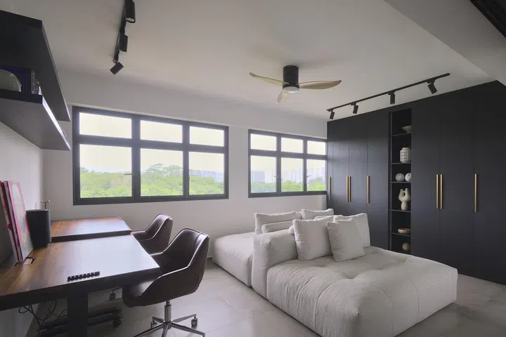 “We love the common room most as this is where we hang out together on a daily basis,” shares Melvrick, who moved into the home with Zhi Min in December 2023 after an eight-week renovation costing around $110,000 excluding furniture and furnishings. “Friends who visit often find themselves gravitating to this area towards the latter half of the gathering when they are in the mood to sink into the sofa and just chill,” he adds.