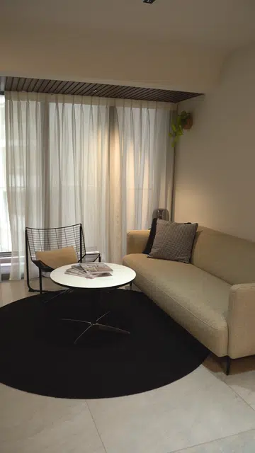 The master bedroom uniquely reflects Zach’s personal passions. By ingeniously repositioning the bathroom entrance, he created a private music corner where his piano stands ready to inspire. This space perfectly blends practicality with passion, illuminated by sunlight by day and offering comforting privacy at night, perfect for reflective moments.