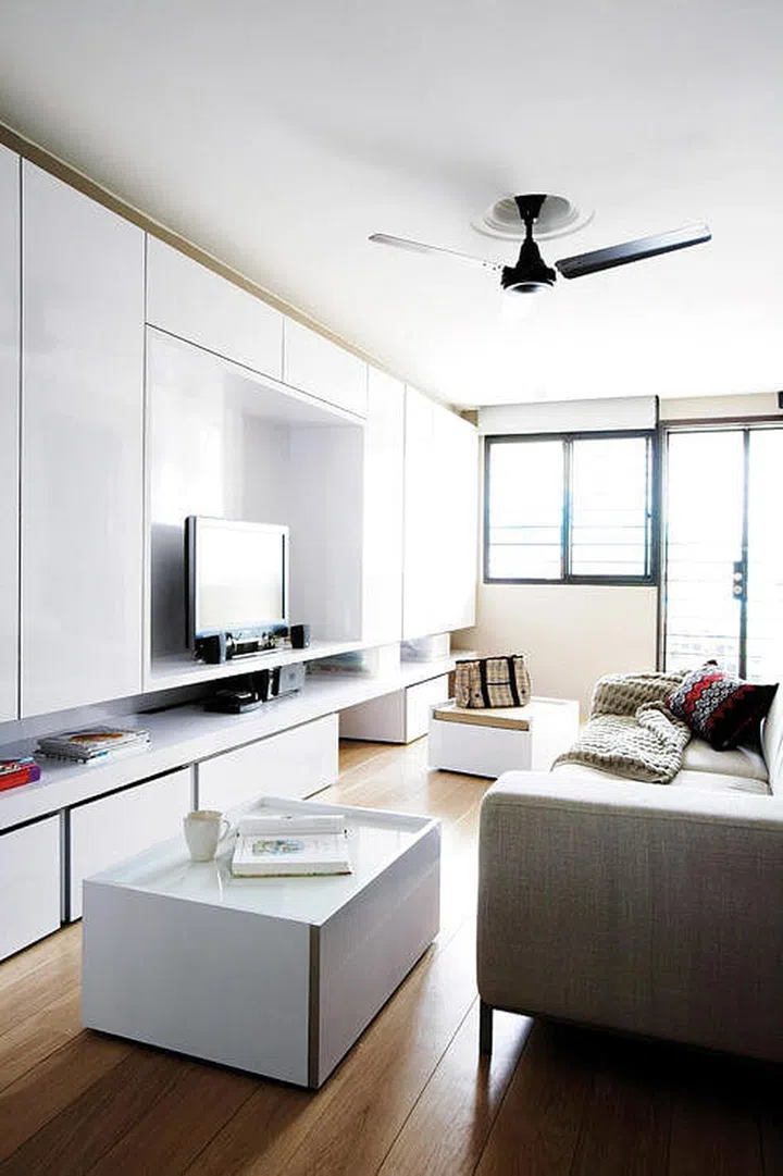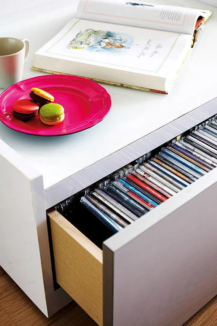 The pull out seat doubles up as storage for DVDs and knick-knacks.