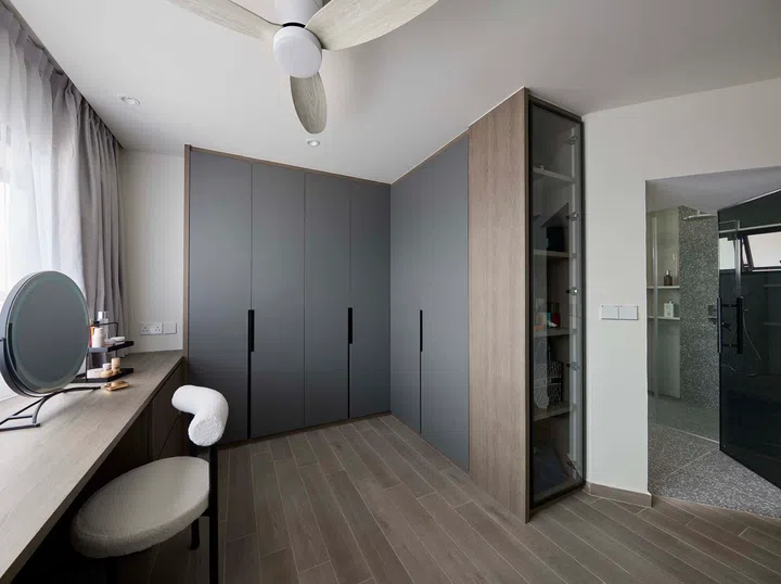 The 27-year-old apartment went through a complete overhaul that included hacking of walls, layout reconfiguration, carpentry, as well as electrical, lighting, ceiling, plumbing and tiling works, costing about $230,000 including furniture and furnishings. It took about four months, including a one- to two-week break during the Lunar New Year period, and the couple moved into their new home in May 2024.