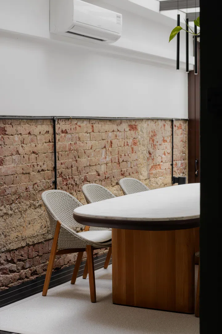 The original brickface makes a star appearance in the living room, sharing a structural wall between this area and the open-plan kitchen (which it leads to).