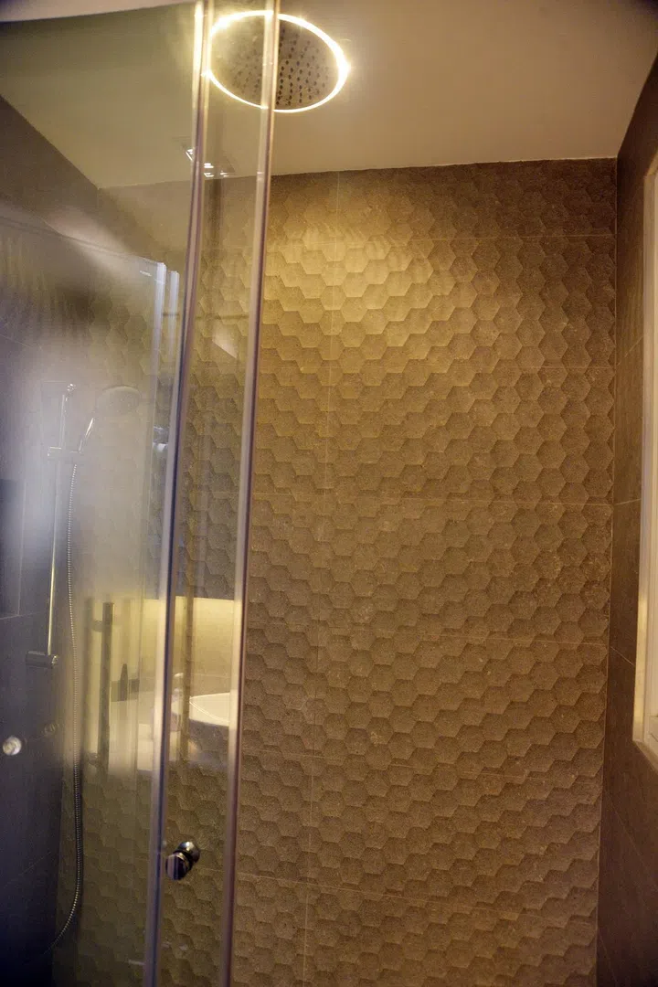For Mr Lim, 40, his favourite part of the home is the master bathroom. It has a rain shower with an LED ring light installed as the light from the ceiling is blocked by the shower head.