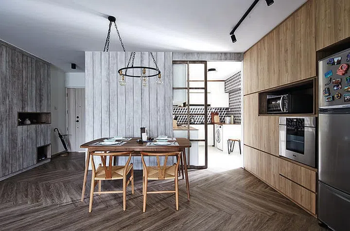 The designer refreshed the five-room flat with wooden accents and a lighter colour scheme.