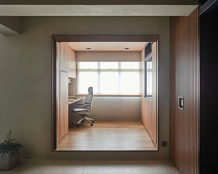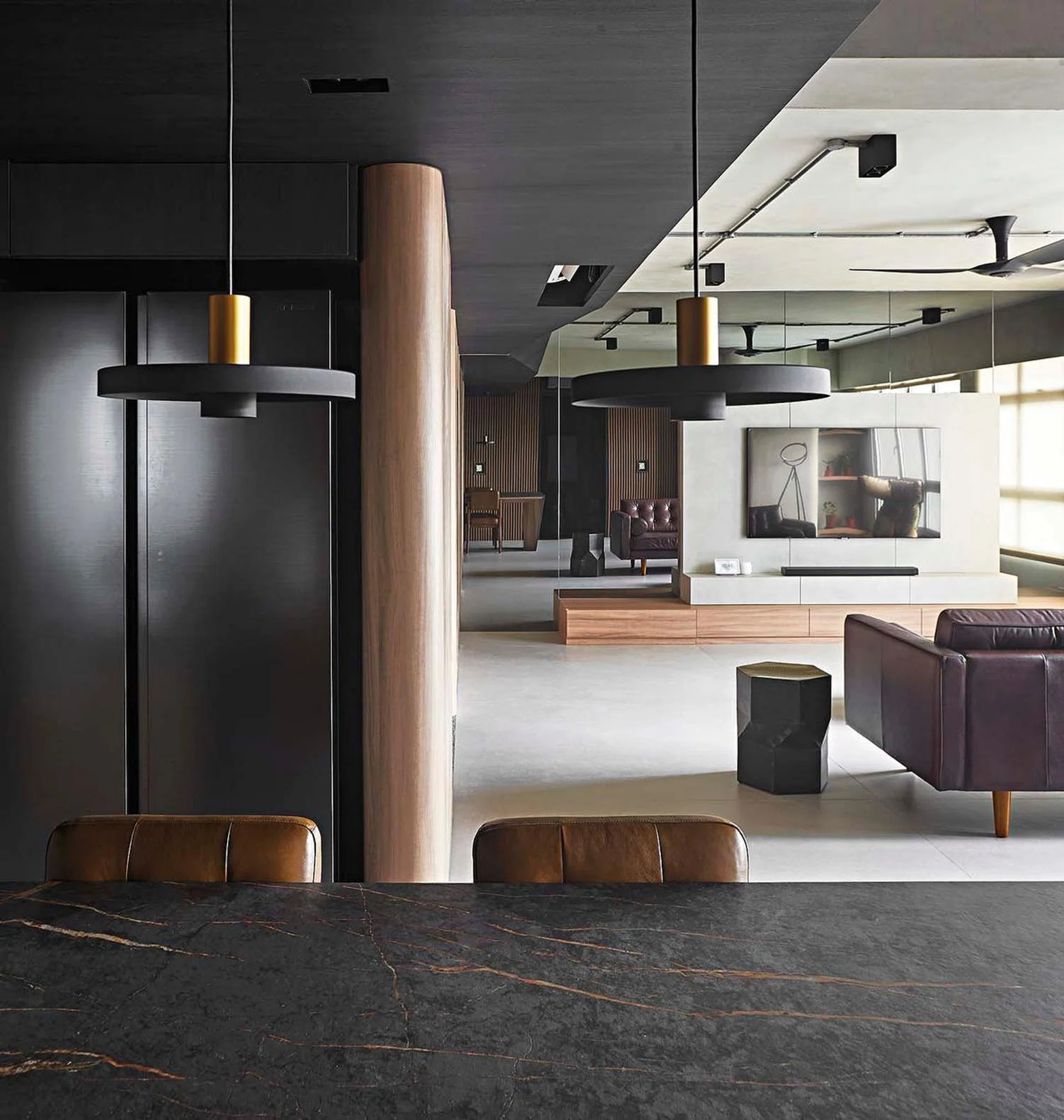 “In its purest form, brutalism can be, well, brutal, devoid of warmth and cosiness. To mitigate this, we incorporated Scandinavian elements such as wood and green to tame the harshness,” Kelvin explains.