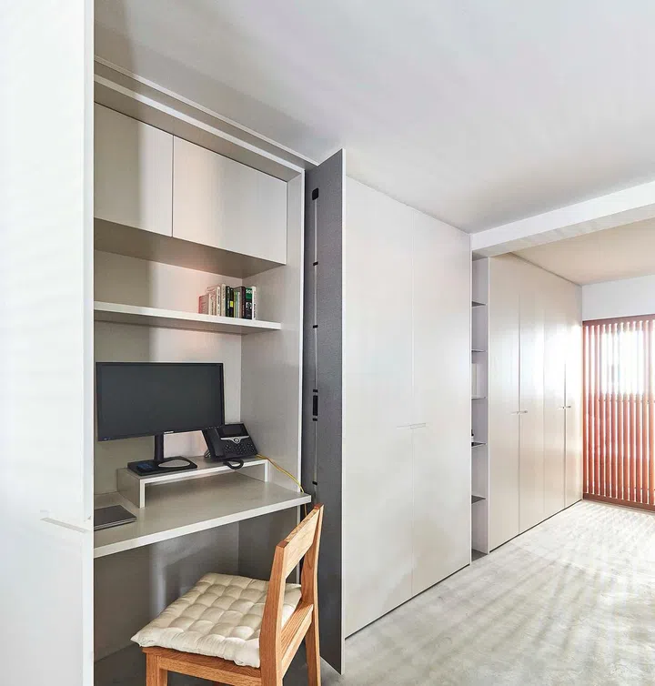 Storage was high on the list of priorities, as the flat didn’t have a household shelter and the bedroom was too small to have a proper wardrobe.