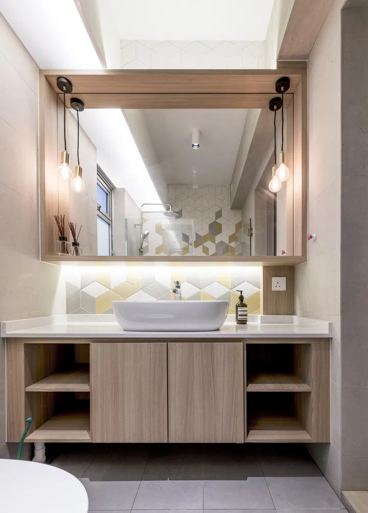 Even though the bathroom has limited space, Philip strategically changed the position of the vanity to add more counter space for daily necessities.