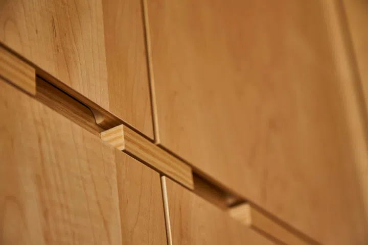 “We like the raw texture of plywood, but Sujono proposed a veneer that could achieve the look we wanted while being more durable. Everything else he proposed, such as the bathroom tiles and open kitchen shelving where we can display our Japanese ceramic goods, [met our criteria],” say the couple.